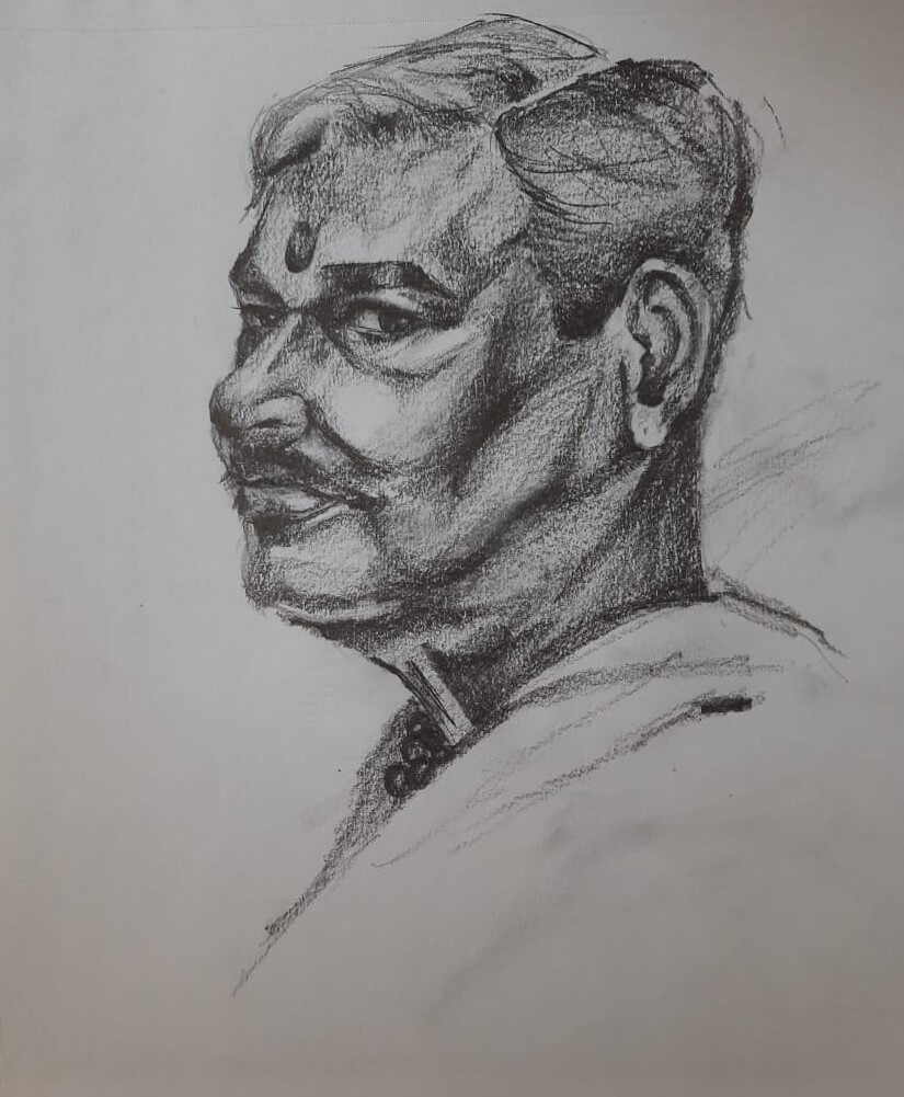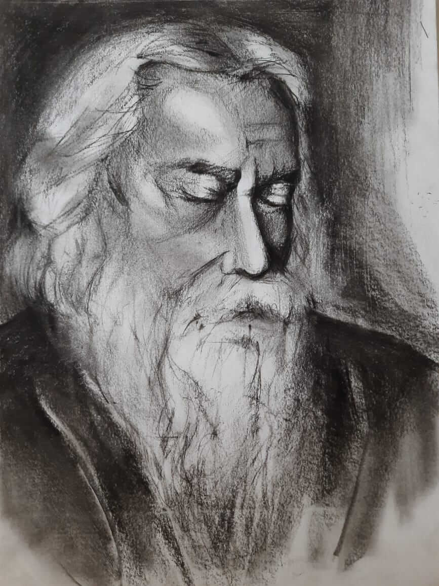 Description: portrait. Charcoal on paper. Rabindra Nath Tagore